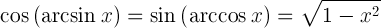The sine of arccosine of x is equal to the square root of (1-x2):